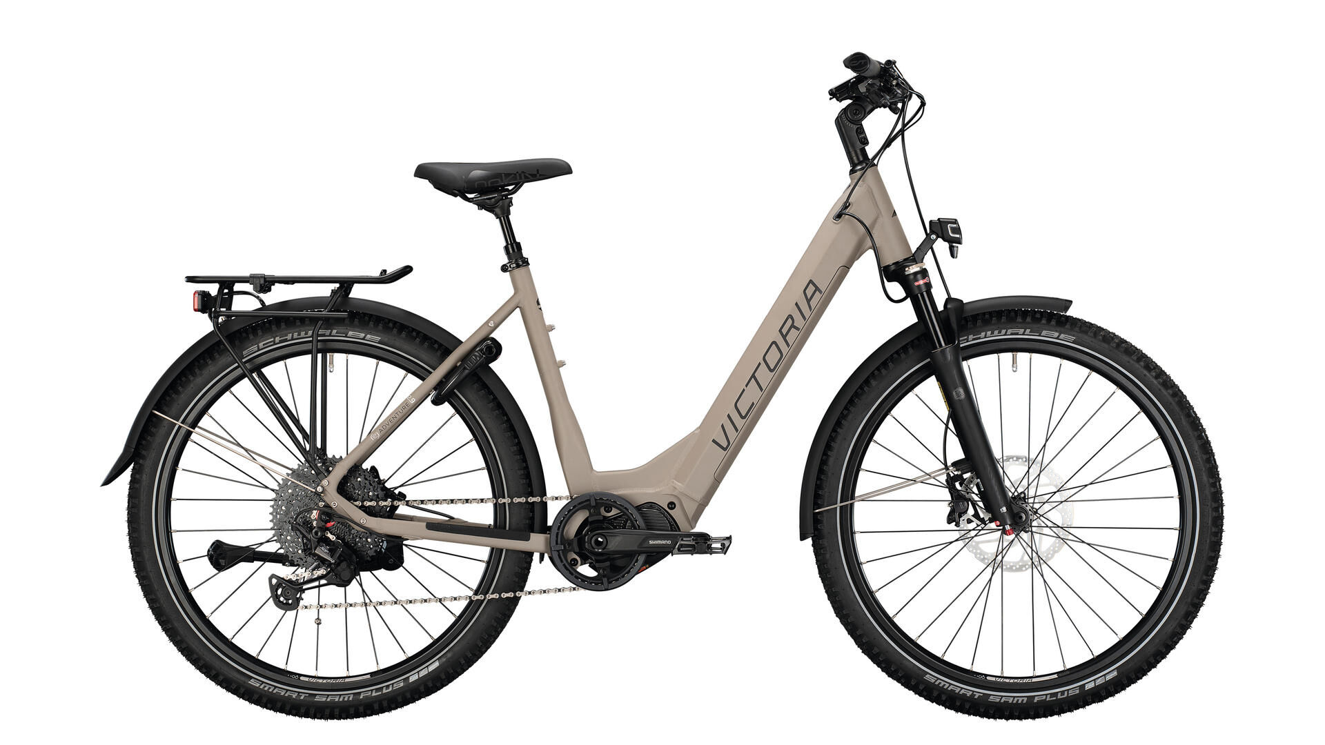 La selle "Essenza" de Selle Royal, adaptée à la forme du cadre, est très confortable, d'autant plus que la selle est maintenue par une tige de selle à ressort. Tout est fait pour que le VICTORIA "eAdventure 12.9" allie plaisir de conduire et confort pour de longues randonnées.